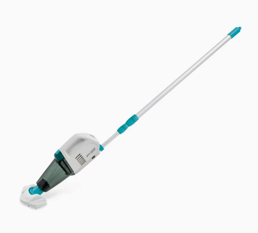 El aspirador de piscina manual es ideal para desincrustar y aspirar la suciedad que se encuentra en el suelo, las paredes y las esquinas de cualquier spa o piscina elevada de hasta 5,49 m de diámetro. Se activa cuando se sumerge en el agua, momento en el que comienza a expulsar agua por sus laterales, lo que indica que está en funcionamiento y realizando su tarea de aspiración. Este aspirador limpiafondos piscinas es muy práctico y fácil de manejar, ya que no requiere cableado ni conexión a una manguera: su batería se carga mediante una fuente de alimentación USB durante 5-6 horas y tiene una autonomía de 50 minutos. Gracias a su mástil telescópico regulable de hasta 2,39 metros y a sus dos cabezales intercambiables, podrás llegar con total facilidad a cualquier rincón de la piscina o spa: el cabezal más grande es apropiado para la limpieza de áreas amplias, como el fondo de la piscina, mientras que el cabezal más pequeño es idóneo para zonas más reducidas, como las esquinas o los bordes. Una vez finalizada la limpieza diaria de tu spa o piscina, podrás extraer el depósito de 0,8 litros y limpiarlo para dejarlo listo para el próximo uso. En definitiva, se trata de una aspiradora de piscina INTEX con un diseño intuitivo y fácil de manejar que permite una limpieza rápida y sin complicaciones, ideal para el cuidado diario de piscinas y spas.