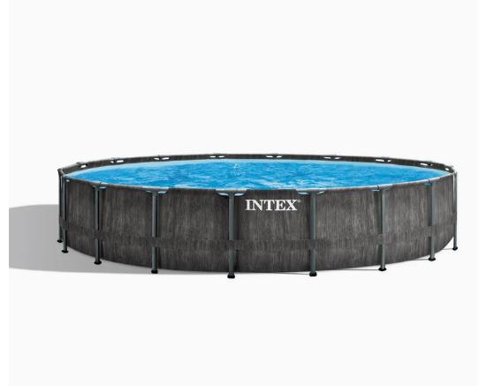 Piscina Estructural Redonda INTEX Prism Frame Greywood, 5.49 x 1.22m, 24.311L, con Bomba, Escalera, Cobertor y Tapiz